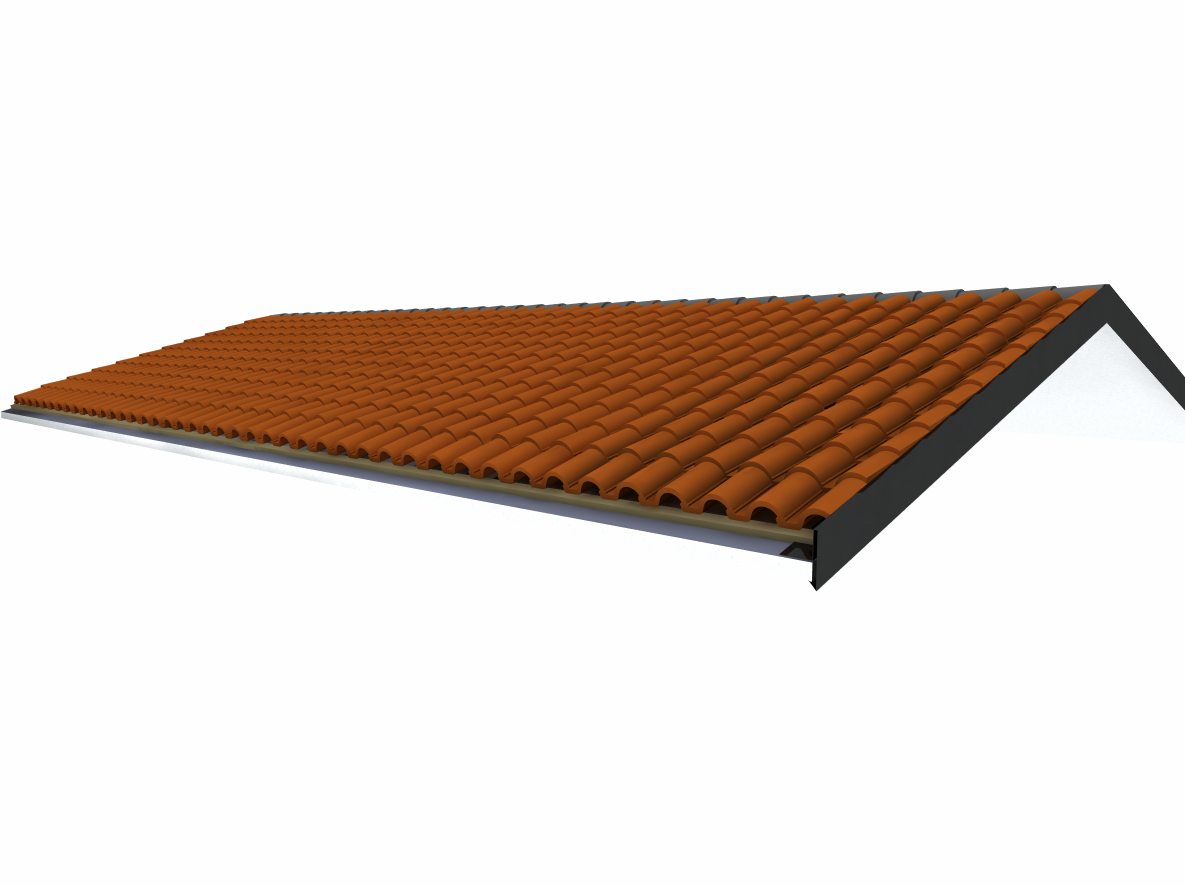 Tetto a due falde con coppi 3D. Molto utile partire da questo esempio per poi elaborarne le varianti necessarie al proprio progetto.